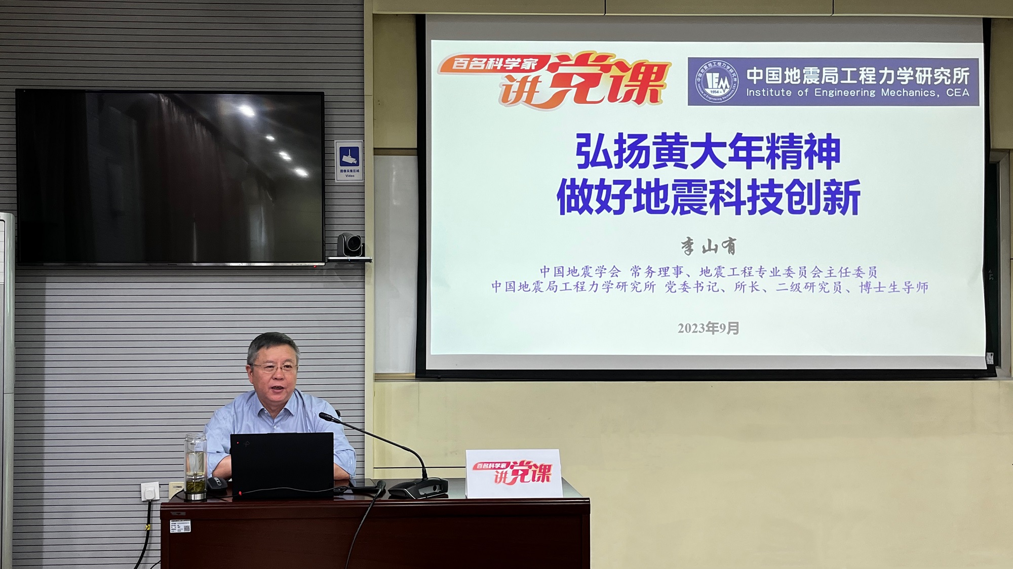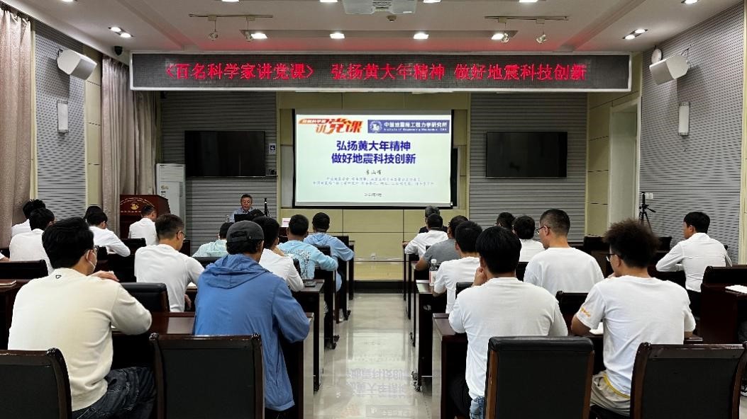 發布時間: 2023-09-15 點擊數量:9224為有效發揮中國科協黨校全國學會分校政治引領“主陣地”、黨性錘煉“大熔爐”作用,中國科協科技社團黨委組織開展了“百名科學家講黨課”活動。受中國地震學會邀請,9月14日,中國地震學會常務理事、地震工程專業委員會主任委員,我所黨委書記、所長李山有同志以《弘揚黃大年精神 做好地震科技創新》為題為所辦計財黨支部、工程地震研究中心黨支部及碩士研究生第二黨支部講授專題黨課。