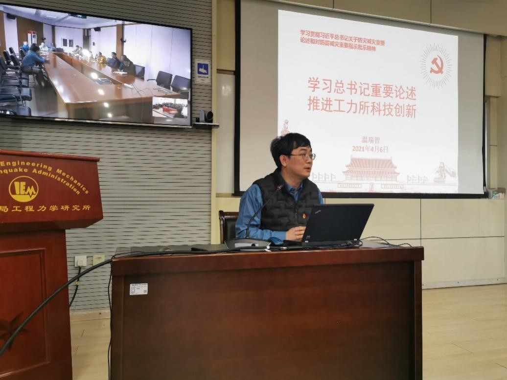 溫瑞智主任同與會(huì)科技人員一道共同學(xué)習(xí)了習(xí)近平總書記關(guān)于防災(zāi)減災(zāi)救災(zāi)重要論述和防災(zāi)減災(zāi)救災(zāi)重要指示批示精神,對(duì)創(chuàng)新在國(guó)家發(fā)展全局中處于核心地位分享了自己的認(rèn)識(shí)和思考。科技創(chuàng)新要堅(jiān)持政治引領(lǐng),貫徹落實(shí)習(xí)近平總書記“兩個(gè)堅(jiān)持”“三個(gè)轉(zhuǎn)變”重要論述和“以防為主、防抗救相結(jié)合”的工作方針。溫主任結(jié)合我所科研工作實(shí)際,系統(tǒng)介紹了近年來科技創(chuàng)新工作取得的進(jìn)展和成績(jī),結(jié)合自然災(zāi)害防治、韌性城鄉(xiāng)、地震應(yīng)急和科考等生動(dòng)地闡述了唯有科技創(chuàng)新才是推進(jìn)防震減災(zāi)事業(yè)現(xiàn)代化建設(shè)高質(zhì)量發(fā)展的重要?jiǎng)恿ΑW詈螅瑴刂魅斡谩昂粚?shí)監(jiān)測(cè)基礎(chǔ)、加強(qiáng)預(yù)報(bào)預(yù)警、摸清風(fēng)險(xiǎn)底數(shù)、強(qiáng)化抗震設(shè)防、保障應(yīng)急響應(yīng)”作為培訓(xùn)報(bào)告的結(jié)語,表達(dá)了工力所廣大科技工作者踐行“防震減災(zāi),造福人民”的初心使命。