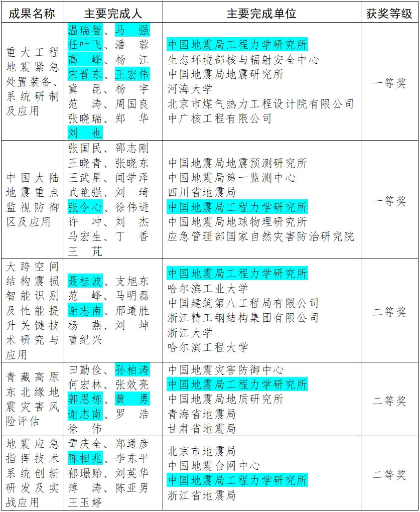 近日,中國地震局公布了2025年度防震減災科研成果獎評選結果,我所作為牽頭單位完成的成果獲一等獎1項、二等獎1項,作為參與單位獲一等獎1項、二等獎2項。
